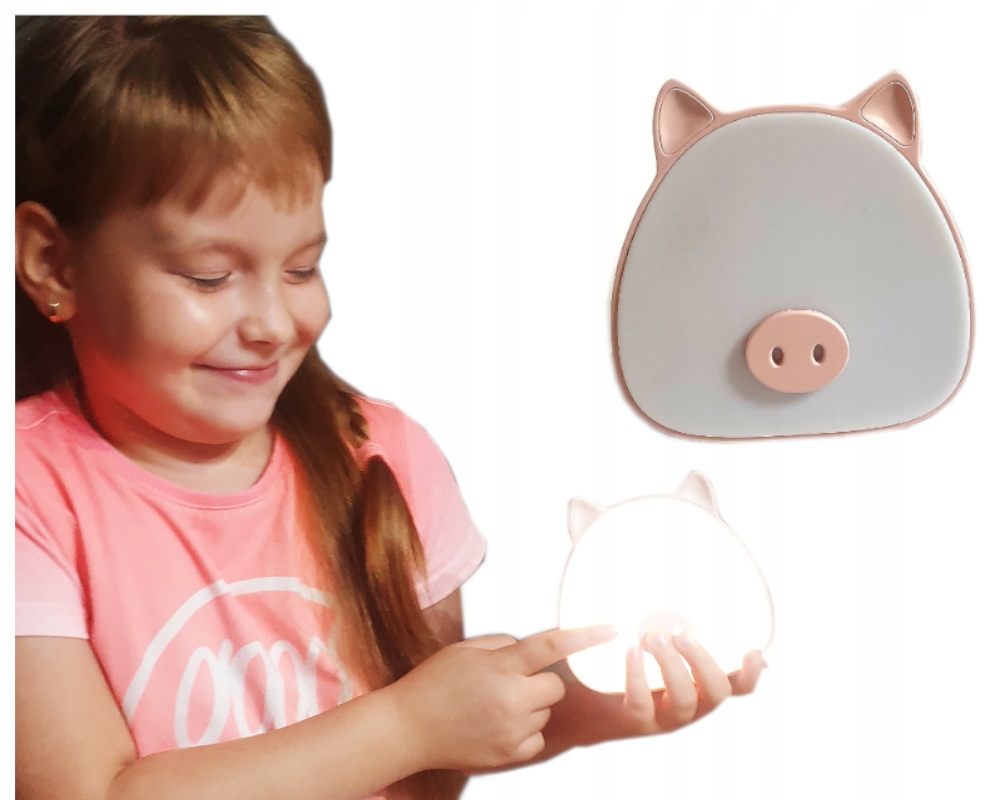 Očarujúca a funkčná LED lampa v tvare prasačieho ňufáka, dostupná v ružovej a bielej farbe.