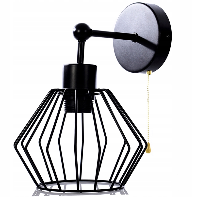 Wewnętrzna Lampa ścienna - Kinkiet z włącznikiem na sznurku, w kolorze czarnego matu.