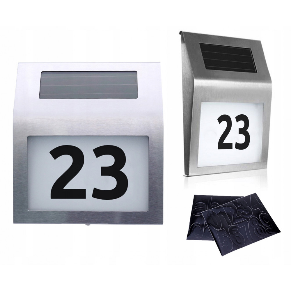 Podświetlany numer domu to doskonałe rozwiązanie na efektowne wyeksponowanie adresu. Dzięki swojej budowie urządzenie wykorzystuje promienie słoneczne magazynując je w wydajnym akumulatorze, a diody LED zapewniają wielogodzinne działanie i dobrą widoczność zamieszczonego na niej numeru domu. Panel solarny pobiera energię słoneczną podczas dnia, lampa jest automatycznie aktywowana czujnikiem zmierzchu.