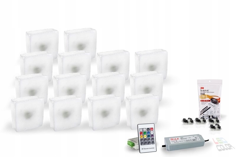 ZAWARTOŚĆ ZESTAWU: 14x LedColor ROCDECO; 1x Zasilacz LED; 1 x Sterownik RGB radiowy