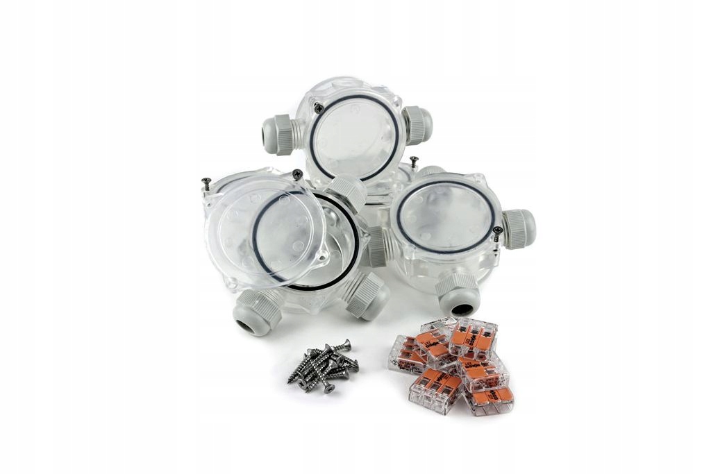 Puszki hermetyczne IP67 - z dwoma lub trzema dławnicami. Idealne do wykonywania szczelnych połączeń przewodów w ziemi.