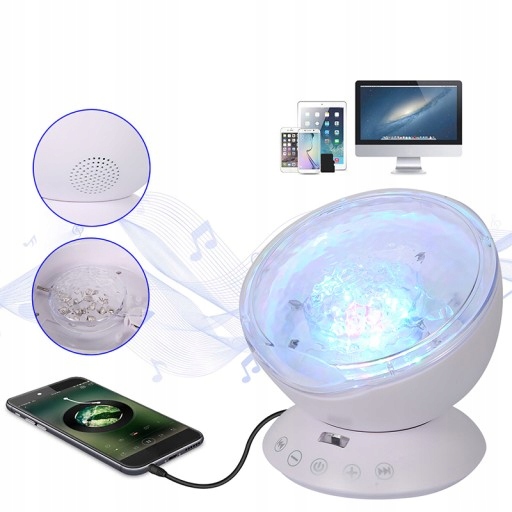 NAJNOWSZY PROJEKTOR WAVE OCEAN: 12 wysokiej klasy ultra jasnych diod LED z obrotową głowicą projektora. Projektor światła Baby-safe z pilotem zdalnego sterowania i przyciskiem czujnika dotykowego, podwójny opcjonalny i wygodniejszy w obsłudze. Może służyć do włączania / wyłączania lampy, zmiany trybu oświetlenia, regulacji jasności, regulacji głośności, ustawienia automatycznego wyłączania timera.