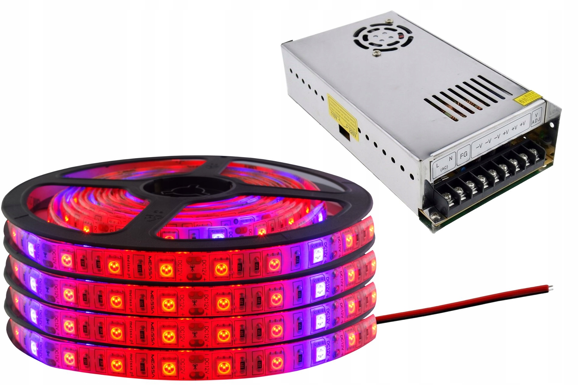 Zestaw taśma LED 5050 300D GROW do wzrostu i uprawy roślin MEiSSA 5050 5/1 IP65 14.4W/m 20m + zasilacz