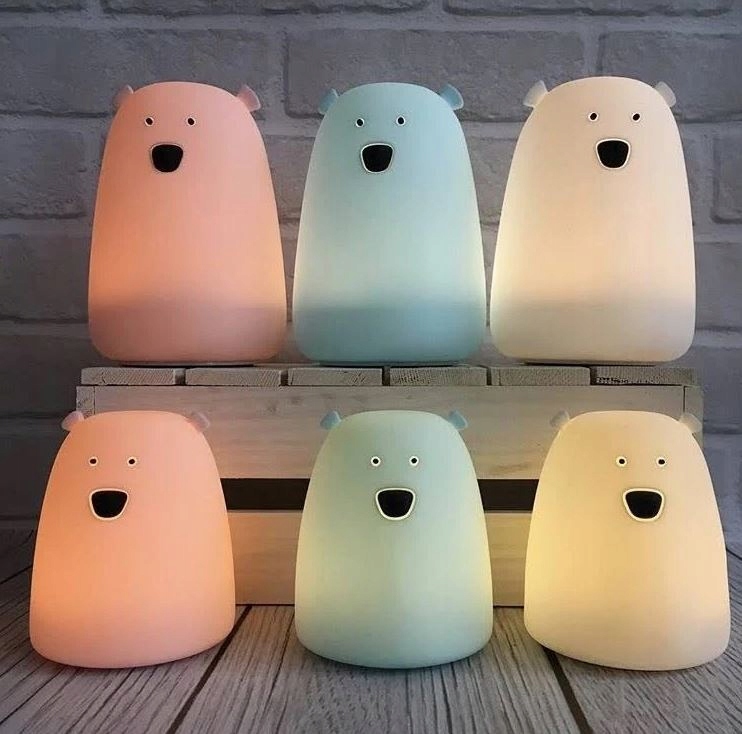 Silikonowa lampka miś ze zmieniającym się światłem. Bardzo miła w dotyku. Możliwość włączania i wyłączania poprzez klepnięcie.