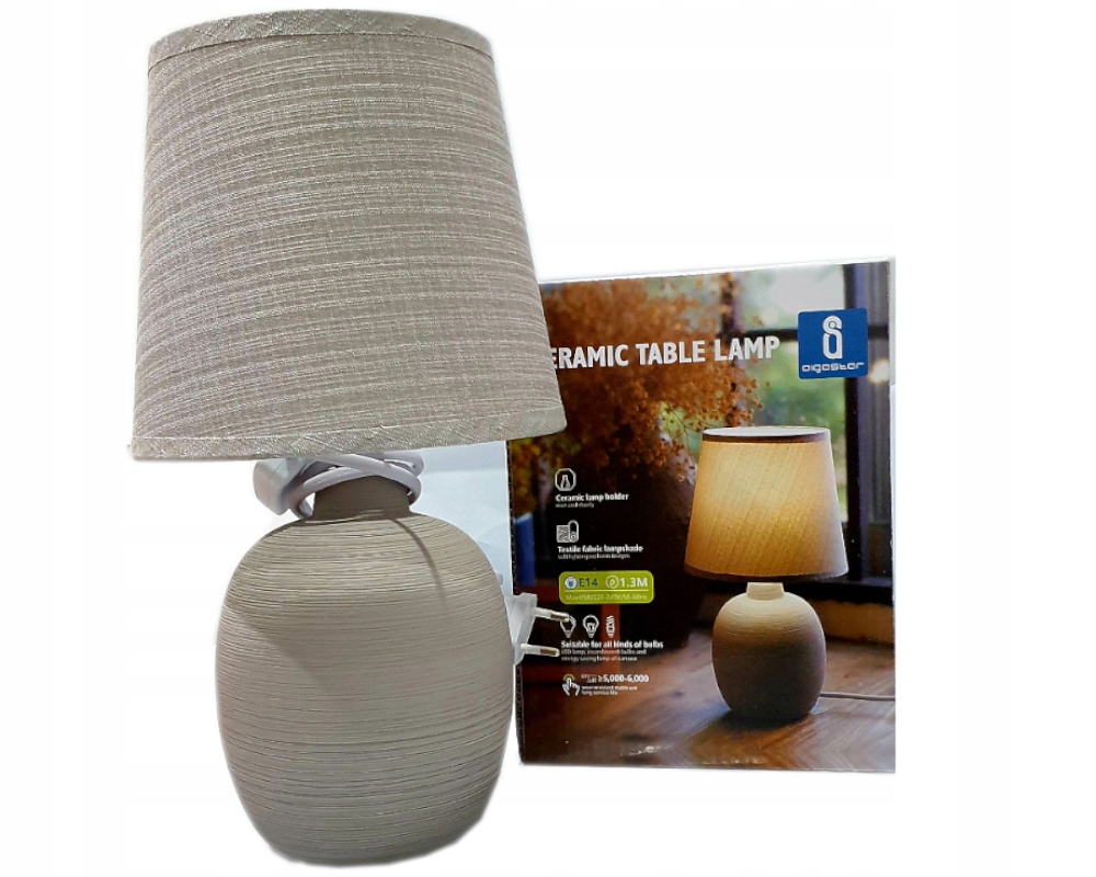 Lampka ma 31 centymetrów wysokości i 17cm szerokości, została solidnie wykonana. Posiada włącznik i wyłącznik, który jest wygodną opcją podczas użytkowania. Abażur wykonany jest z klejonego płótna o barwie szarości