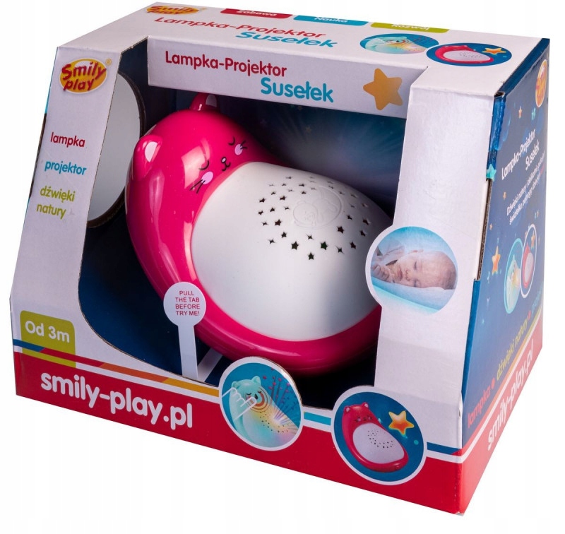 Czerwony Susełek pomaga uspokoić i uśpić maleństwo, wypełniając pokój gwiezdnymi światełkami i odtwarzając spokojne melodie, odgłosy oraz dźwięki natury.