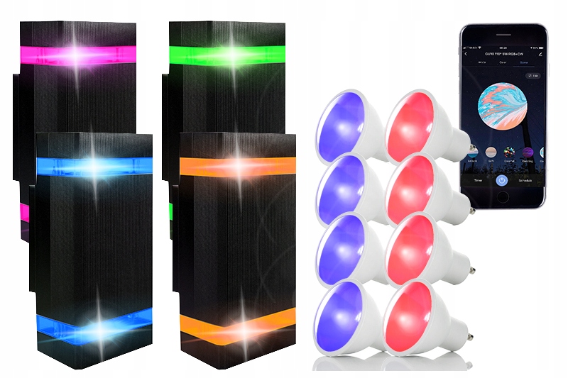 Poza szerokim zakresem białego światła, żarówka świeci również 16 milionami kolorów RGB! Konfigurowalne sekwencje światła takie jak błysk, gładkie przejścia czy stałe światło świetnie spiszą się zarówno podczas wieczornego oglądania filmów, relaksu jak i przy głośnych imprezach w domu!