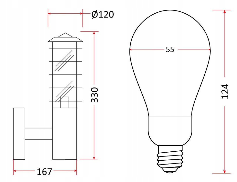 Kinkiet prosty ogrodowy lampa zewnętrzna + żarówka