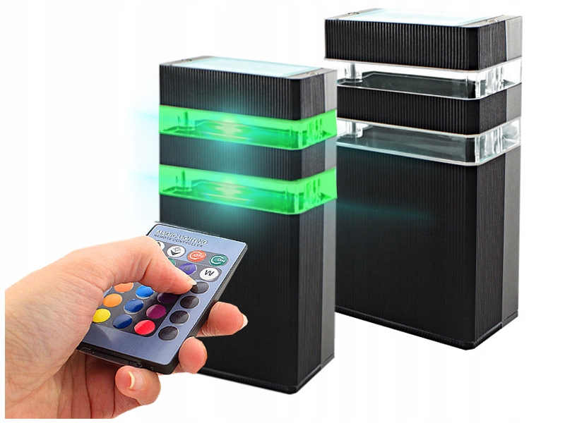 Lampa natynkowa - Kinkiet LED świecący w kolorach RGB sterowany pilotem.