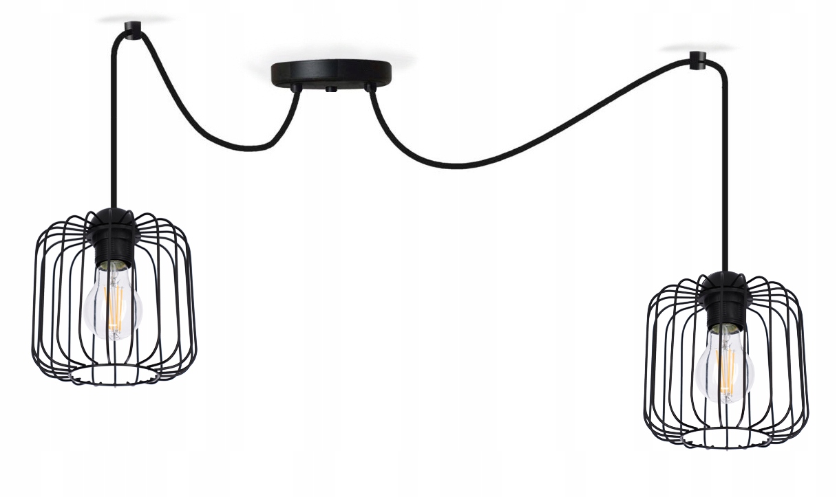 Klosze zamontowane na regulowanych zwisach. Można dowolnie regulować wysokość na której zwisa klosz. Długość każdego kabla 2 metry.