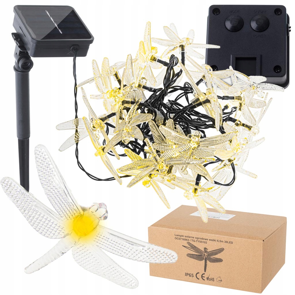 Lampki ogrodowe solarne ważki LED ledowe do ogrodu 6,5m 30LED ciepły biały