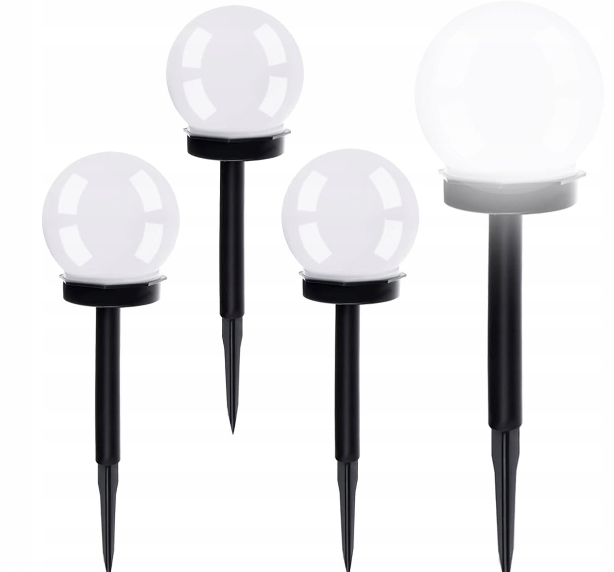 ⚡4x LAMPA SOLARNA OGRODOWA LED MOCNA BIAŁA KULA WBIJANA LAMPKI SOLARNE XXL⚡
